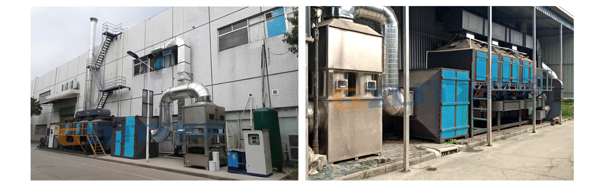 橡膠廢氣主要產生工藝是塑煉,混煉,壓延,擠出,成型,硫化,廢氣主要來源是膠漿制備,涂膠,浸膠,煉膠,硫化廢氣,廢氣特點低濃度,大風量,成分復雜,有含硫廢氣。設計前端采用綜合除塵工藝末端配套催化燃燒(CO)進行廢氣凈化治理。