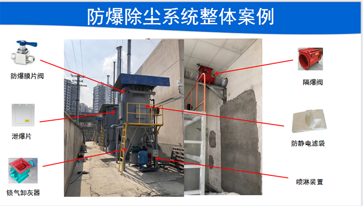 對整個除塵器箱體進行加固。鋼板的厚度多少、能承受多少的壓力等,在進風口加裝單向閥或隔爆閥,當爆炸發(fā)生時,不會影響到其他管道。在除塵器箱體上加裝泄爆口或泄爆片。泄爆片的作用是在爆炸發(fā)生時,將爆炸的能量泄向一個可控的,且不受影響的地方。